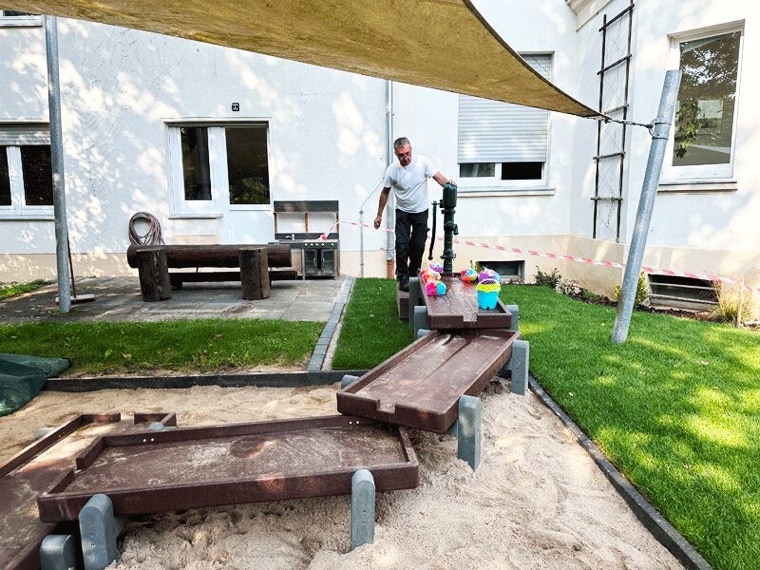 heute möchten wir Ihnen einen kleinen Zwischenstand der neuen Wasser-Matsch-Straße geben. Wie Sie den anhängenden Bildern entnehmen können, ist die Installation bereits sehr weit fortgeschritten. Der Rasen muss jetzt noch anwachsen und im kommenden Frühjahr können die Kinder die Anlage intensiv bespielen. Wir möchten im Frühjahr gerne ein kleines Richtfest feiern und würden uns sehr freuen, wenn wir Sie anlässlich dessen herzlich begrüßen können, damit Sie sich selbst ein Bild machen können.